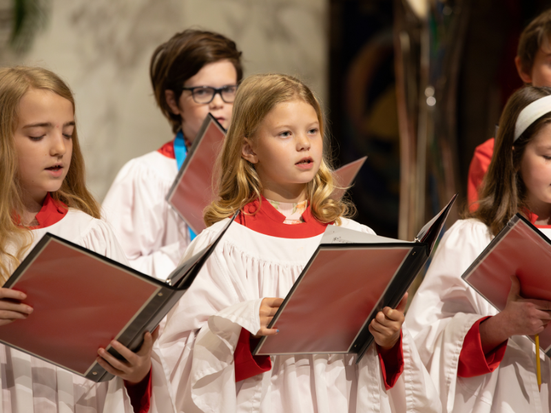 Each week, Choristers rehearse, learning hymns, psalms, and anthems in preparation for services. They sharpen their sight-reading, strengthen their theory, and grow in confidence as performers and leaders of worship. They sing at monthly Evensongs, feast days like The Feast of Saint Michael, and beloved parish traditions such as Epiphany Lessons & Carols and the Blessing of the Animals. Alongside the music, they learn responsibility: arriving on time, caring for their music and equipment, and working as part of a team.