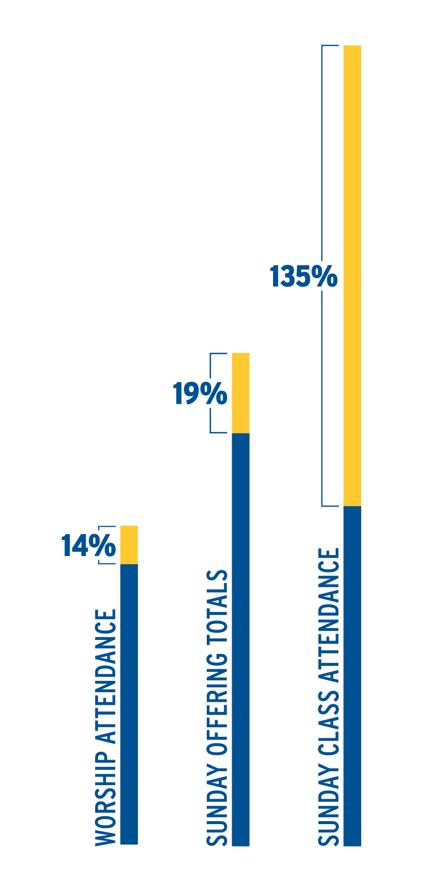 Sunday worship attendance is defined as simply as it sounds: How many people are physically present in our Sunday worship services. This number does not include those who stream our worship services online, although we do track that number and it increased in 2025. This number does not include extra services throughout the week that are not part of our Sunday worship offering. In the first 49 weeks of 2025 compared to the same weeks in 2024, we’ve experienced a 14% increase in worship attendance.