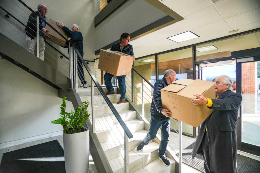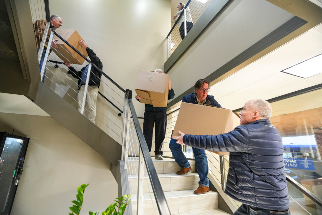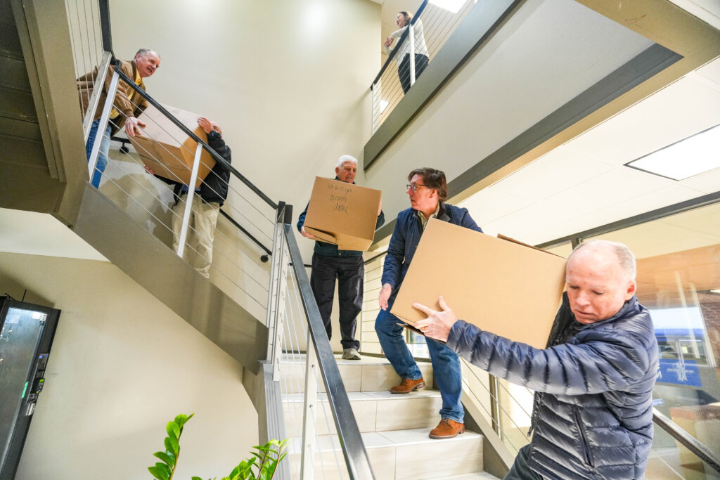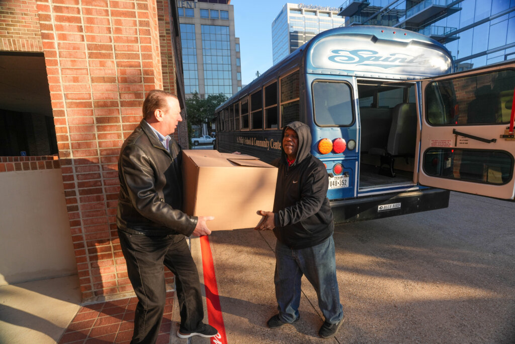 The Seekers men’s group formed a human chain on Wednesday, Dec. 3 to move 600 donated children’s winter coats from the Formation Office to a waiting Saint Phillip’s bus. The coats were distributed to needy families on December 20 at St. Phillip’s Christmas Store.